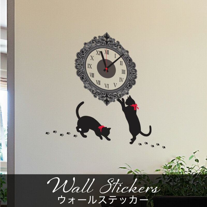ウォールステッカー おしゃれ 時計 北欧 モノトーン 猫 リボン かわいい 女の子 子供部屋 子供 英字 数字 モダン トイレ 大きい カフェ キッチンドア シンプル 窓 玄関 [◆]