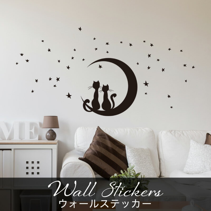 ウォールステッカー おしゃれ 北欧 モノトーン 猫 子供部屋 女の子 子供 動物 星 七夕 モダン トイレ 大きい カフェ キッチンドア シンプル 窓 玄関 [◆]