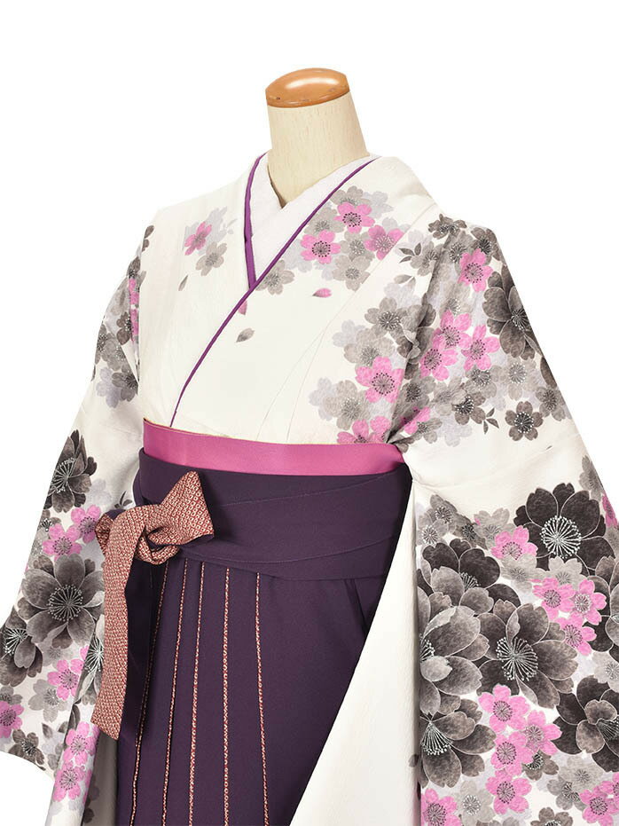 【レンタル】卒業袴レンタル 袴レンタル 卒業式 大学卒業 短大卒業 専門学校卒業 高校卒業 白着物 紫袴 おしゃれ袴 先生袴 往復送料無料 新品足袋プレゼント トールサイズ 【レンタル】卒業袴レンタル 袴レンタル 卒業式 大学卒業 短大卒業 専門学校卒業 高校卒業 白着物 紫袴 おしゃれ袴 先生袴 往復送料無料 新品足袋プレゼント トールサイズ 【レンタル】165cm~170cm 白の地色に紫のお花が可愛いお着物とひだのかのこがポイントの袴のセットアップです。