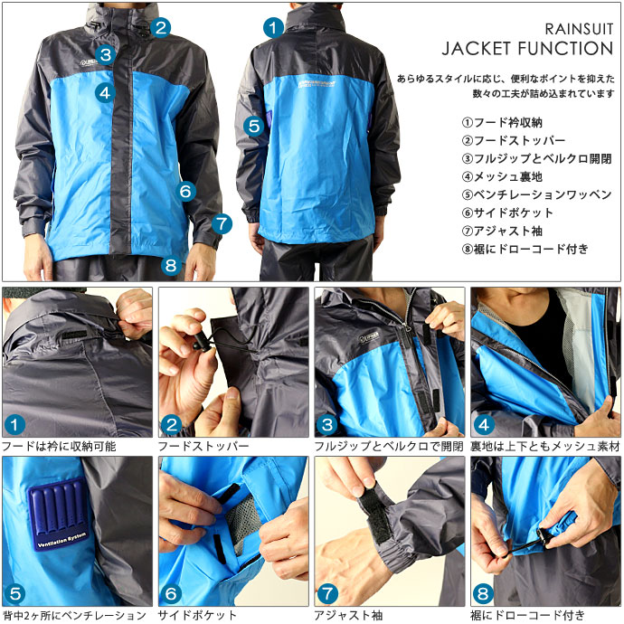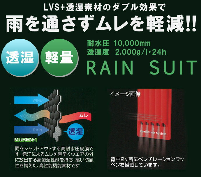 ロゴスのレインスーツ上下セット! ●発汗によるムレを素早くウェアの外に放出する高透湿性能を持ちながら、防風性を備えた高性能機能素材を使用! ●ジャケットは背中2箇所にベンチレーションワッペンを搭載。