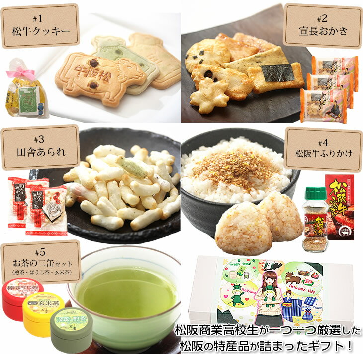 松阪商業高校生が一つひとつ厳選した松阪の特産品が詰まったギフトです。