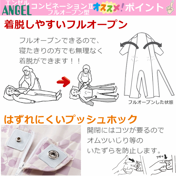 ◆フルオープンできるので、寝たきりの方でも無理なく着脱ができます。