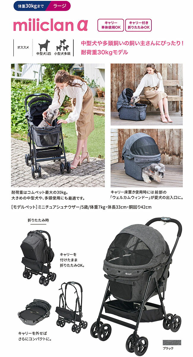 中型犬や多頭飼いの飼い主さんにぴったり! 耐荷重30kgモデル キャリー床置き使用時には前部の「ウェルカムウインドー」が愛犬の出入口に。
